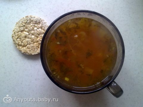Щи постный, хлебец, тефтели, морковь.