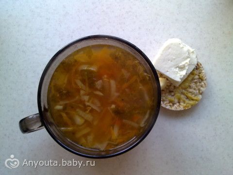 Щи на воде, хлебец, чеснок, горчица, сыр адыгейский.