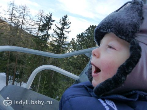 Накатались на санках, поехали высоко в горы на подъёмнике