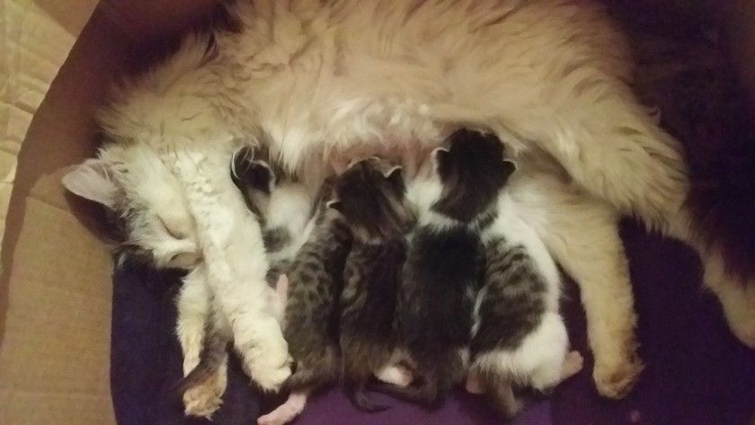 На Новруз у нас кошка со двора родила аж 5 котят.Мы их пока приютили в доме, им больше 10 дней) Растут как на дрожжах, а точнее на кошачьем гв)?