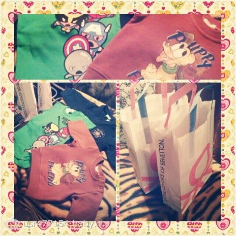 Вчерашний день решила провести с пользой для ума, вместе со своей тетушкой.Так как она всего на 7 лет старше, пошли мы с ней значится в Музей Современного Искусства, по описанию выставка предвещала интересности, но оказалось всего пара моментов, когда действительно что-то интересное было.Потом решили поехать в третьяковку, но не успели чутка, закрылась на вход уже.Пошли в веганскую кафешку, очень даже вкусненько там, хотя я и не веган(обе пожаловались, что не помешало бы тут мяска)).Но все же посидели хорошо.На обратном пути решили зайти в бенеттон посмотреть ей пиджак, но у меня мои загребущие глазки увидели десткие вещички и огромные скидки на них(хорошо денег не оказалось много с собой, иначе все там бы осталось)))В общем ушли без пиджака, но зато с покупкамми для нашей малышули!)