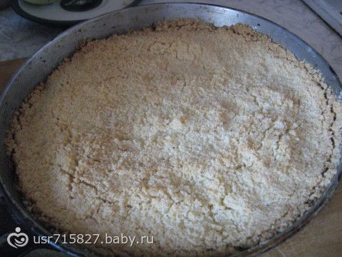 Рецептик: для крошки — 180 г масла, 200 г муки, 100 г сахара. Измельчить на крупной терке масло, добавить сахар и муку, растереть все ложкой.