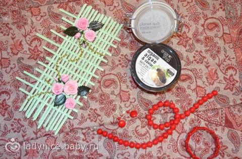 Для красоты: крем для тела, сертификат в летуаль, соль для ванны. Это то, что мне сейчас нужно в моем похудении. Этим подаркам я была очень рада. Тут же бижутерия и такая красота из бумаги, сделанная руками одной мамочки