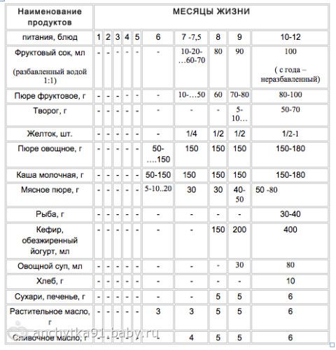 1.мы в 3,5 месяца начинали… с фруктового пюре яблоко с 0,5 -1 ч.л далее если все хорошо нет аллергии потом на след.день давала 3-4 ч.л, на 3 день где — то 20 гр.кушала… потом груша, чернослив так же вводить