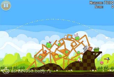 там птичками стреляешь по свинкам(они там за стенкой сидят)