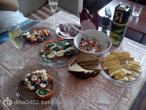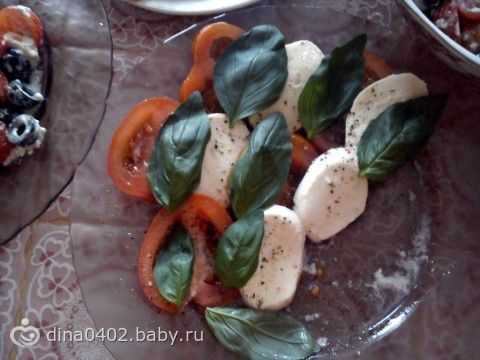В этот день у нас была кухня Итальяно))) Итальянское бел.сухое вино, капрезе, паста, правда салат греческий, тоже его очень любим)