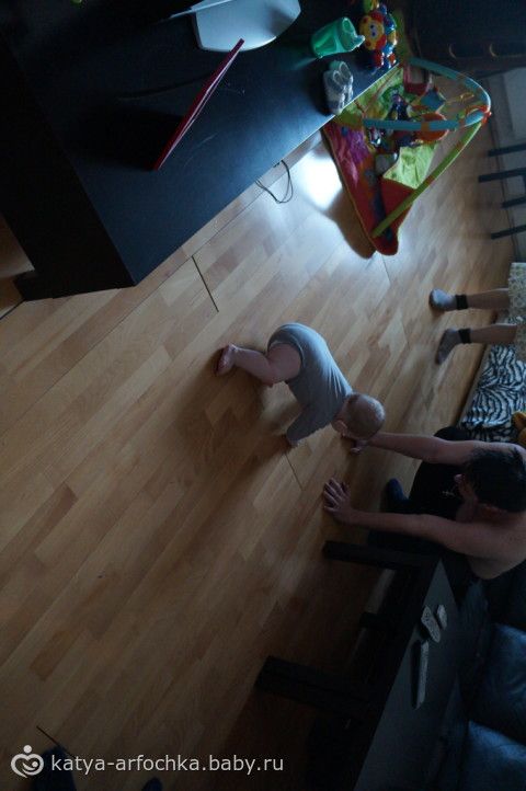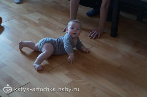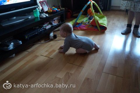 Какой он у вас закаленный! Кать а коленочки не натирает ползая?