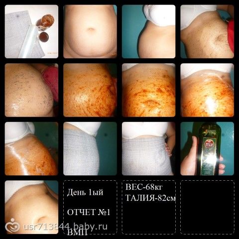 В этот день настигли меня КД….отпишусь сразу, что 1ый день КД для меня особо тяжёл, я всегда болею в этот день…… сильно падает давление, рвота и прочие неприятности! Целый день лежала без движений…к 12 ночи полегчало…… и я пошла, делать кофейный скраб и обвертывание красный перец+мед! После обвертывания (кстати, тело горит до сих пор, переборщила с перцем) нанесла оливковое масло на живот, ноги и грудь. Это все, что я смогла сделать сегодня….стыдно, самой неприятно, но что поделать, если для меня даже схватки проходили легче, чем 1ый день КД!!!