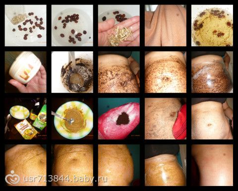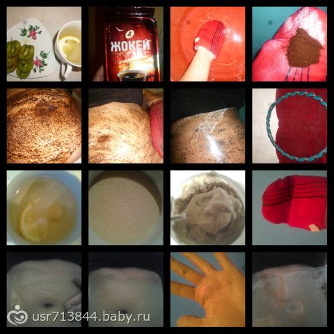 - Кофейный скраб + кофейное обвертывание + обруч (на боках появились синяки, но я надеваю два пояса и продолжаю крутить)