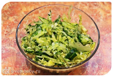 Обед – салат из свежей капусты, зелени и огурцов, болгарского перцв, приправленный небольшим количеством лимонного сока;