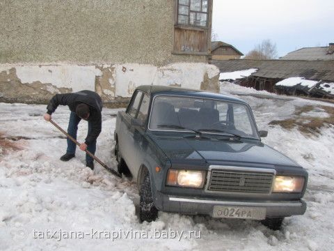 день 99. неудачная попытка поехать к свекрови на блины. было тепло, снег превратился в кашу. Забуксовали три раза, и вернулись домой.