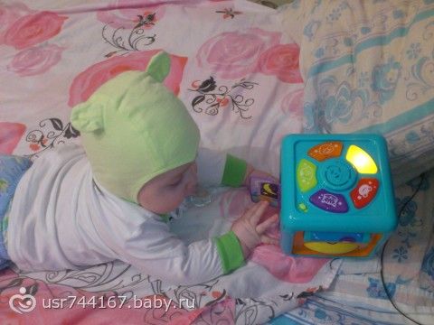 у нас много игрушек но это пока любимая из всех она крутится и у нее 5 милодий и даже есть свои пульт неумелыми ручками получается включать самой и выключать.но пока вроде так.