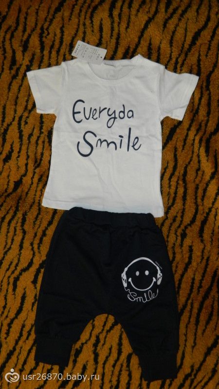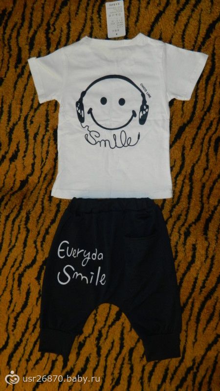 цвета на фото немного искажены. На самом деле цвета как на сайте. очень понравился этот костюмчик. Качество супер, хлопок. Брала на размер 90 ( самый маленький который был) так что на след. лето. Единственный минус — ждала этот костюм с января по июнь. Но оно того стоило!!!