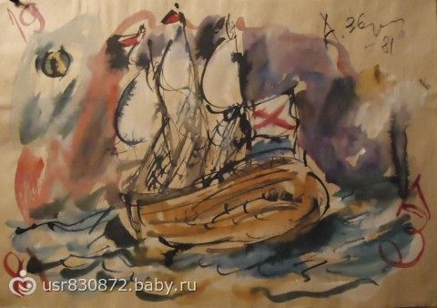 а это наш ей подарок на ДР. оригинал, работа А.Зверева — она его поклонница, у нас увидела и обзавидовалась вся. У нее как раз прихожая вся в теме корабликов — очень стильно выглядит и эта картина впишется идеально. только мы ее еще не обрамили ее