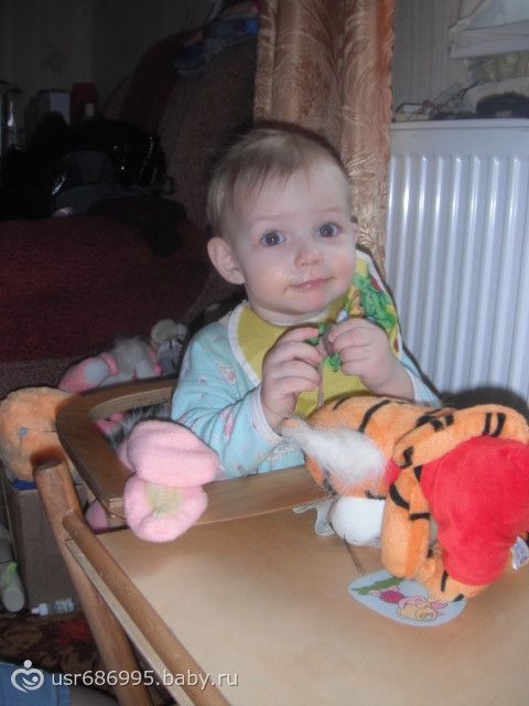Умеет делать очень много, знает мишку, зайку, собачку и кошку, показывает носик, глазки и пупок))) Говорит — мама, баба, дай, на, отдай, ам, ням, кись (кыш), уди (уйди). Залазиет и слазиет с любого дивана или кресла, пытается залазить в свою коечку, говорит гагага и дадада, когда играем в гусей)))) Машет пока-пока, научилась танцевать в такт музыке, бегает, игрет в ладушки, сороку. Ходим на горшок, правда еще не просится, берет за руку и ведет куда ей нужно, любит купаться и когда говорищь пойдем мыться несет свое полотенце)))) Могла что-то пропустить))) Весим около 12 кг и рост 78-79 см.