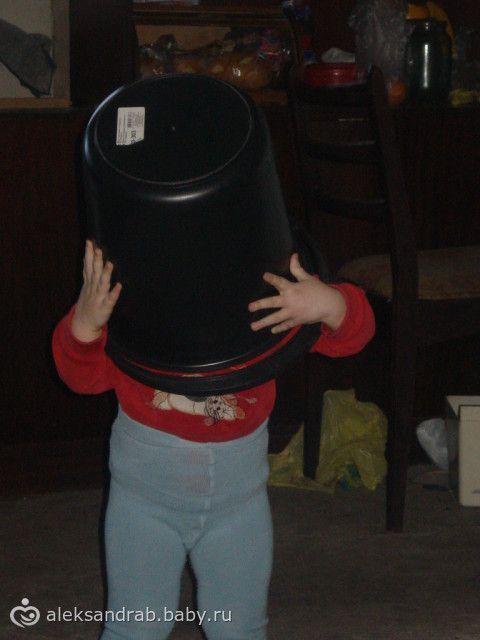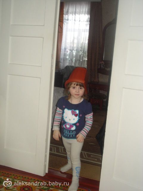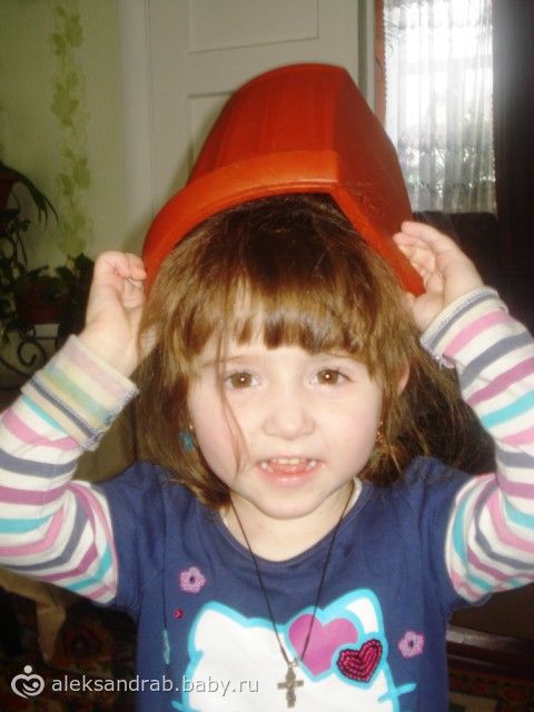 Приколистка)) А моя себе горшок свой на голову одевает или тазик)))