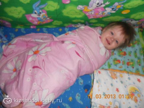 Мы сначала в пододеяльник заворачивали детский, но уже и из него выросли=))) Я сама виновата, пеленки когда мама и свекровь шили говорила им шейте больше я до года заворачивать буду, вроде шутила, а оказалось реальностью=) Но я считаю что это нормально, мне например удобно, я уже привыкла, да и знаю что спать всю ночь спокойно будет.