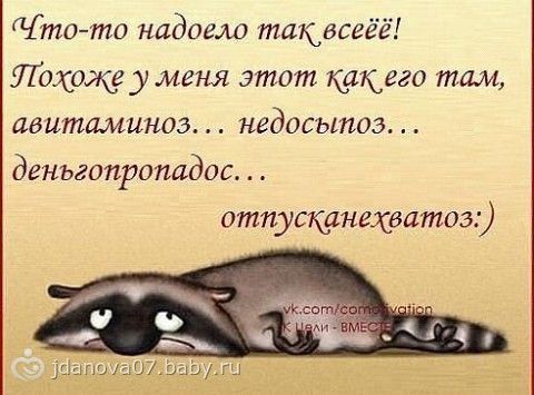 У меня пока что только недосыпоз, хронический ヅ На остальное жаловаться не могу, т.к.всё ради сынульки :-*