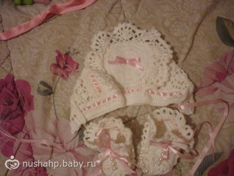 тут пинеточки, вязала с них, только там цветочек не прделывала, а просто украсила жемчужинками… нитки Yana art baby 100% акрил
