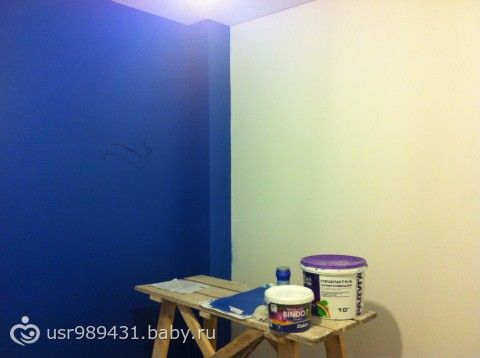 Детская моего сыночка любимого (цвет на одной стине индиго, остальные три-чисто белые), задумка моя-морской стиль, мебелью и деталями доработаю