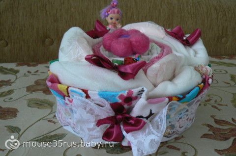 вчера родила сестра мужа!!! наша бэбирушечка!!! сегодня сделала ей подарок-торт из памперсов! подарю на выписку