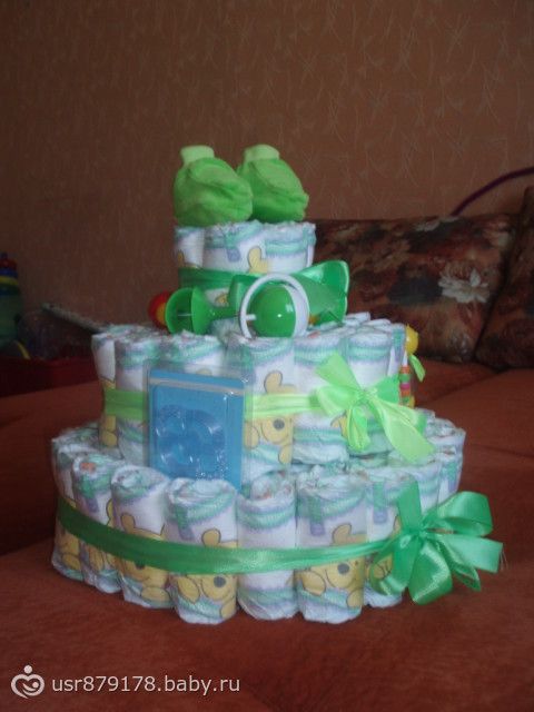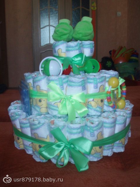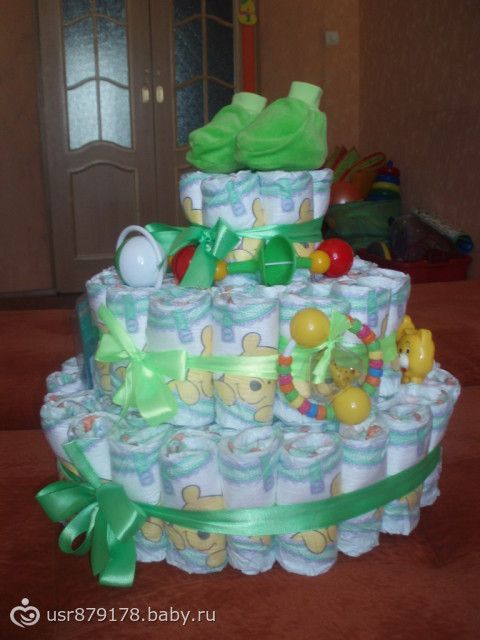 вчера родила сестра мужа!!! наша бэбирушечка!!! сегодня сделала ей подарок-торт из памперсов! подарю на выписку