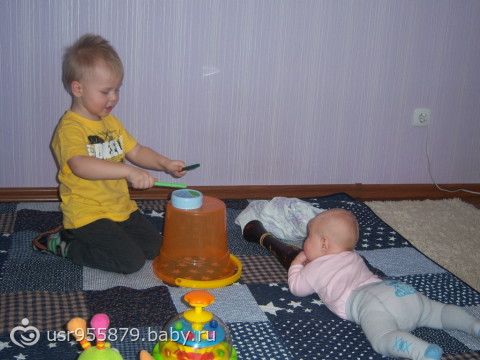 Уже ползаем во всю, сидим и даже встаем на ножки. Видимо, тот факт, что старшенький бегает, дает отличный стимул.