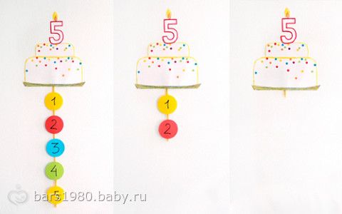 ТО есть торт и наверху цифра три и внизу на ниточке цифры. Каждый день ребенок отрезает одну цифру и становится на один день ближе к празднику!.