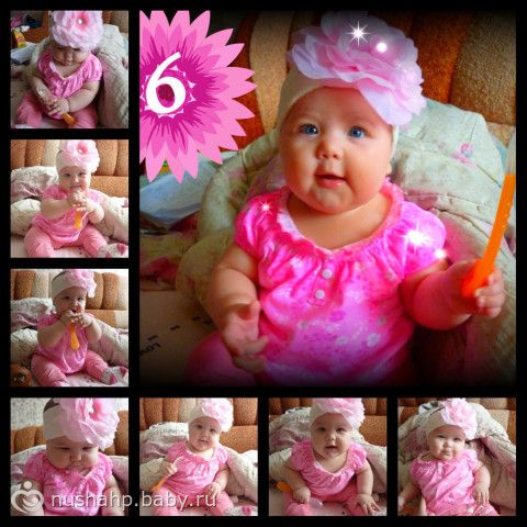 Девочки, вроде недавно родила, а уже прошло полгода! позабыты проблемы с коликами, бессоные ночи… но в памяти навсегда останется первая улыбка, первый смех, лепетание,… Очень люблю свою крошку сладенькую