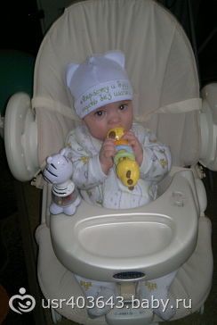 Написано на ней 6-36 мес, но реально мне кажется, для малышей 6-10 мес, поэтому для конкурса выбрала такой возраст — навырост чуть-чуть.