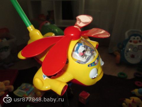 и конечно же надо было купить игрушку… Я купила Тимохе вертолет, который возят детки по асфальту, потому что этот маленький проказник ворует у меня швабру и носится с ней целый день!