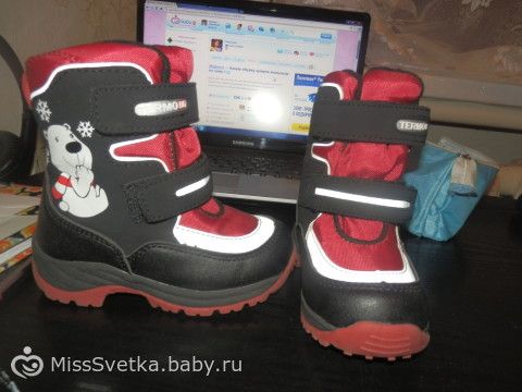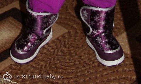 У нас были обычные валеночки. На мой взгляд самый оптимальный выбор для малышей. И одевать легко и сами по себе они легкие. Дома не носили обувь.