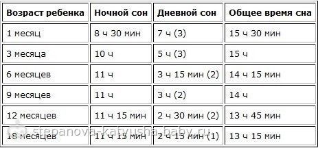 Вот некоторые усредненные нормы продолжительности дневного и ночного сна для детей разного возраста: