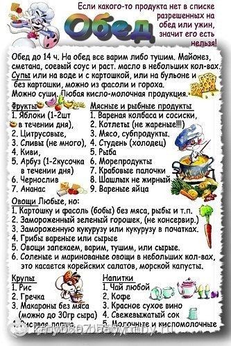 принцип правильного питания, до 12 можно есть все, обед до 14.00 часов, ужин дожен быть до 18.00 что то легкое. Ну и конечно гимнастика каждый день)
