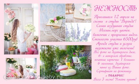 Девочки, кто не успел на 6 апреля, не обижайтесь! Просто в студии больше нет свободного времени Поэтому я решила найти другую студию, тоже интересную, нежную, весеннюю, легкую, воздушную и нашла!