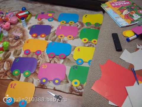 Мы его вырезали из цветного картона, а потом фотки приклеили по месяцам.
