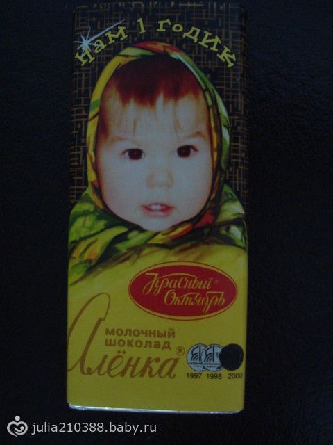 А вот еще идея на годик: мы заказывали этикетки шоколадка Аленка в типографии с личиком дочи, и завернули туда шоколад от настоящего шоколада, подарили гостям. Все были приятно удивлены)