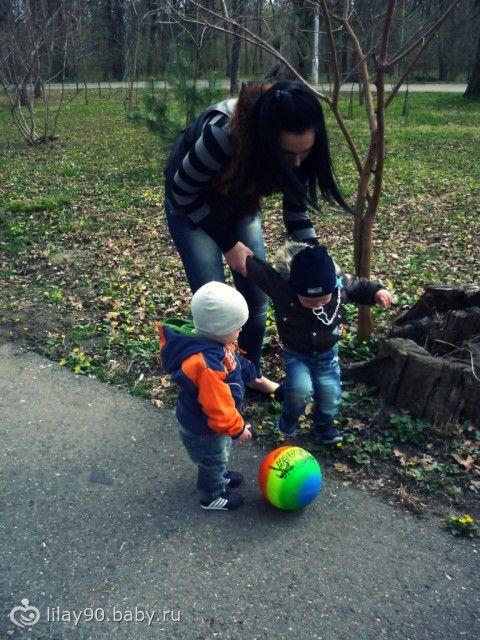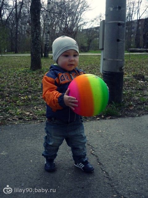 купили Ромочке мячик, такой яркий)))