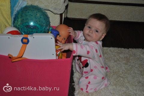 Любит заглядывать в свой ящик с игрушками))) И сама доставать что ей нужно)))