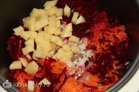 Грудки куриные, лук, морковь, свеклу, картошку...