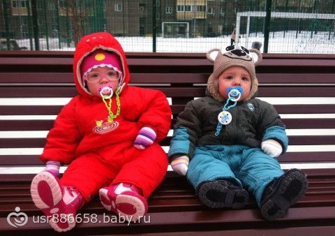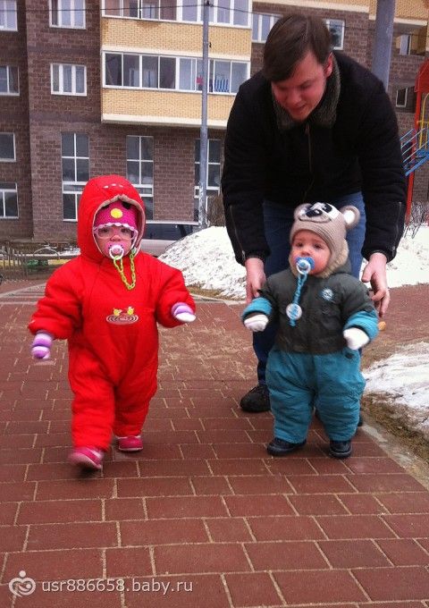 Вот и дождались мы этого светлого дня — дети на улице ножками первый раз ходили… до этого боялась их пускать, так как на льду у самой ноги разъезжаются, а у детей и подавно будут, да и последние 2 недели детки болели (вообще не ходили гулять) ((((