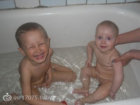 Вот недавно первый раз купали сыновей вместе! Старшему почти 3 г., младшему почти 7 мес. Радости конечно было много)))