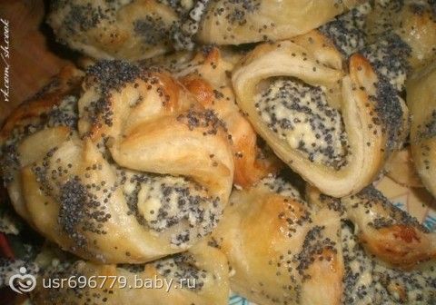 Для начинки творог смешать с сахаром, перемешать. Добавить 1 яйцо и половину мака, все вместе перемешать до однородности. Яйцо взбить. Тесто порезать на квадратики и каждый немного раскатать. На центр класть начинку, уголки смазать взбитым яйцом и слепить противоположные углы, придав форму конвертика. Не забывайте смазывать углы иначе при выпекании они расклеятся. Если тесто с дрожжами то готовые слойки оставить на противне на 20 мин. Затем смазать взбитым яйцом, посыпать оставшимся маком и выпекать. Выпекать при 170 гр. до золотистого цвета. Пекутся быстро. Угощайтесь очень вкусные и нравятся деткам.