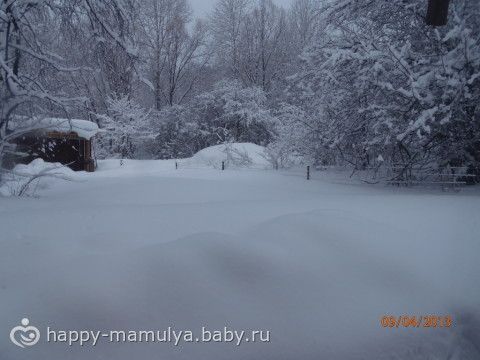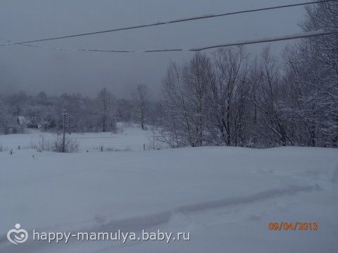На последней фотке виднеется машина, заваленная снегом, сына сегодня в сад папа возил на «Буране» (снегоход).Почти середина апреля...