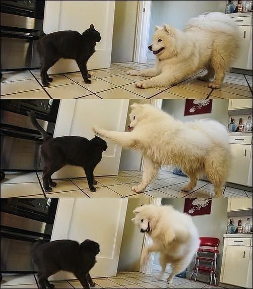 Решили кота в первый раз сухим кормом порадовать. Насыпали миску… сидят вокруг типа не боись ешь… группа поддержки… такая. Барсик решил не огорчать хозяев… но так как был в явном затруднении по поводу способа употребления угощения… сел в миску сделал свое кашачье дело… закопал.