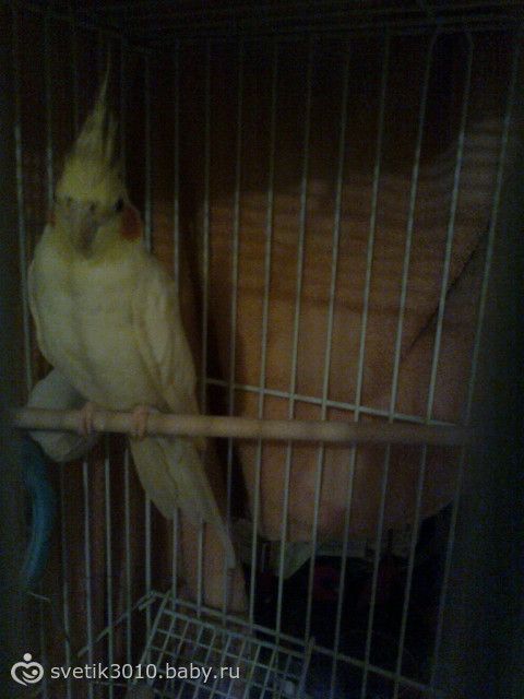 Прошло уже 2 с половиной недели как у нас поселился новый жилец)) Все отлично, чувствует себя прекрасно, чирикает целыми днями на пролет с перерывами на дневной сон)) Меня и сына уже совсем не боится. В воскресенье даже полетать выпустили — правда пришлось быстренько посадить на лесенку и обратно — большо страшно оказалось у нас в комнате летать))