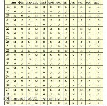 вот эта табличка, тут возраст мамы при зачатии и месяц зачатия, у меня 28 лет и ноябрь = дочка