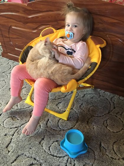 А у нас пока младший брат спит, приходится что-то делать и решила доча пока с котом понежиться и мультики посмотреть?