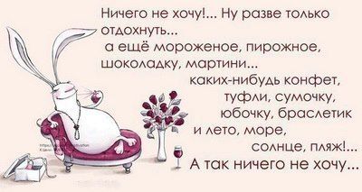 эх… я тоже ничего не хочу, раз ве что, 2кк квартиру, достойную зп для мужа, путевку в экзотическую страну, шоколадку (ммдемс сойдет), молочный коктейль и бабла что б на все что ни хочу делать и покупать хватило
