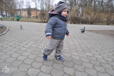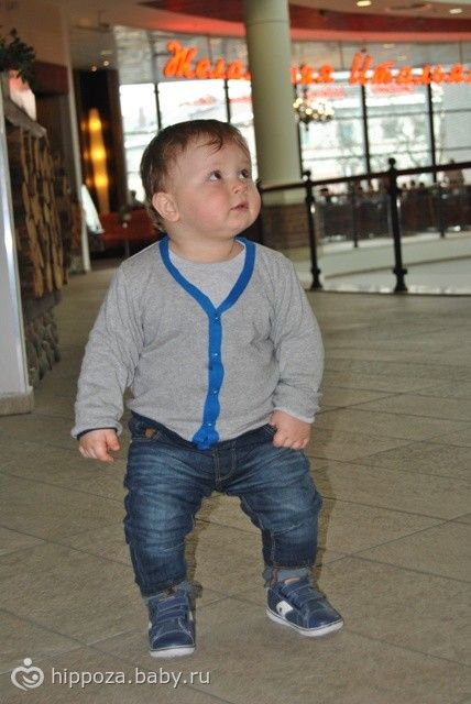 Паренек уже большой! 17 кг, ботинки 24 размера, ходит, правда и падает немало, особенно на улице только и ловлю. Говорит много чего- ам, дай, на, му, ав, кто там (то та), буль, бух, папа, мама, баба, пока (аа), па (купаться), да. Отвечает на вопросы, спрашиваю будешь яблоко, пойдем купаться, гулять! ДА!)